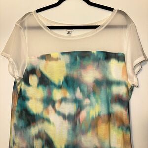 Calvin Klein Women’s Multicolor Watercolor Tee Mesh Panel Size XL NWOT