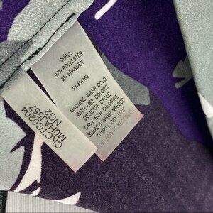 Calvin Klein women's size medium, it is a tunic style, colors gray, purple and white floral print, sleeveless, decorative scoop neckline, lightweight and flowy fabric. Materials 97% polyester, 3% spandex. Care machine wash cold, tumble dry low. RN#54163 MFSR:$59.00 Condition is new with tags as shown in the pictures. Please preview the measurements to ensure fit.