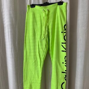Calvin Klein Women’s Neon Yellow Joggers Sweatpants Size M | Logo Lounge Pants