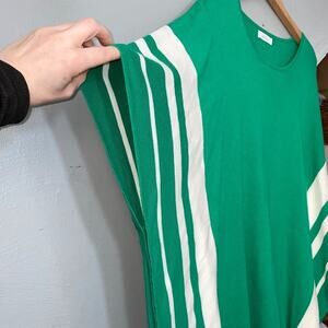 Calvin Klein green with white stripes pullover poncho sweater in Excellent pre-owned condition.
