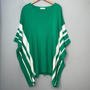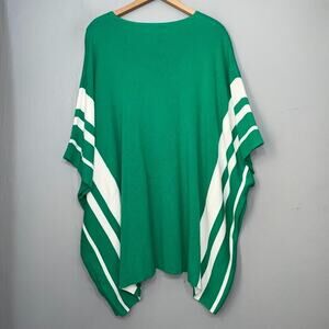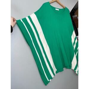 Calvin Klein Womens One Size Kelly Green White Stripe Poncho Sweater Preppy Chic