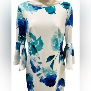 Calvin Klein Women's Peplum Sheath Dress in a floral blue
