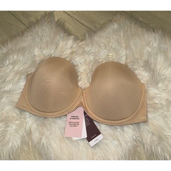 Calvin Klein Womens Perfectly Fit Strapless Push Up Bra 36D QF5677 Beige New