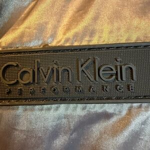 Stylish performance metallic puffer vest by Calvin Klein. Features a sleek design with a secure zip closure for phone and another for valuables. Perfect for layering. Down and feathers fill.