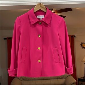 Brighten up your wardrobe with this stylish pink jacket from Calvin Klein. Perfect for any occasion, this jacket combines comfort and fashion effortlessly.