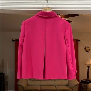 Calvin Klein Women's Petite Size 6P Crepe Button-Front Pleated Back Pink Blazer Jacket. Four gold button front closure. Two front pockets. Shoulder pads.