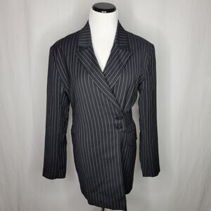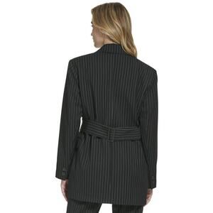 Calvin Klein Women's Pinstripe Belted Jacket Black White NWT Size 4