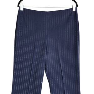 Calvin Klein Womens Pinstripe Wide Leg Dress Pants Side Zip Size 8 Navy White