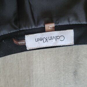 Calvin Klein Womens Plaid Pencil Skirt Faux Leather Waistband Size 12 Wool Blend