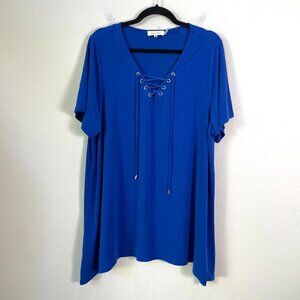 Calvin Klein Womens Plus 1X Lace Up Front Tunic Top Short Sleeve Stretch Shirt