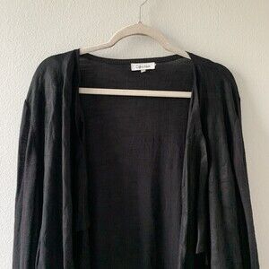 Calvin Klein Womens Plus Size 2X Black Open Front Linen Drape Cardigan Sweater