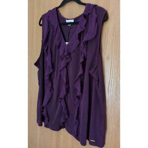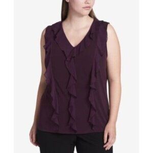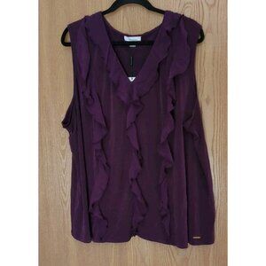 Calvin Klein Womens Plus Size 3X Ruffle Front V Neck Shell Dark Purple New