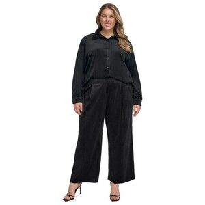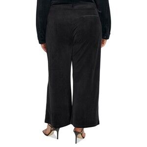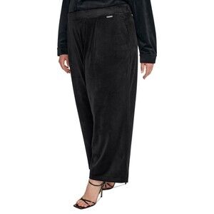 Calvin Klein Women's Plus Size Pleat Front Velour Wide-Leg Pull-On Pants Blk 0X