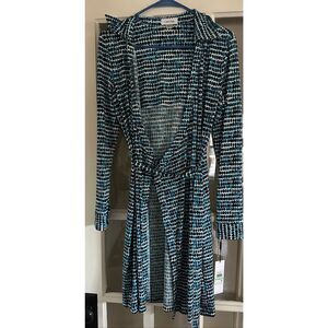Calvin Klein Women's Printed Long-Sleeve Wrap Dress blue size 8