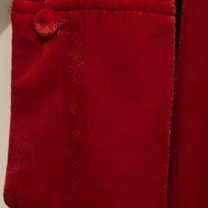 Red Velvet Sheath Dress Polyester/Spandex Ruched Front with keyhole neck exposure. Shoulder padding. Hidden back zipper, fully lined, knee length.