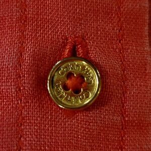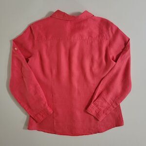 Calvin Klein Women's Red Orange Linen Long Sleeve Button-Down Blouse