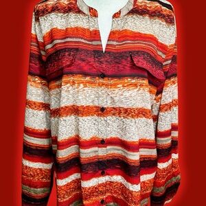 Calvin Klein Women’s ‘Roll Sleeve Printed Everyday Blouse’ in Red Abstract Multi