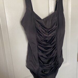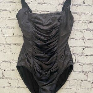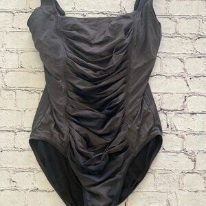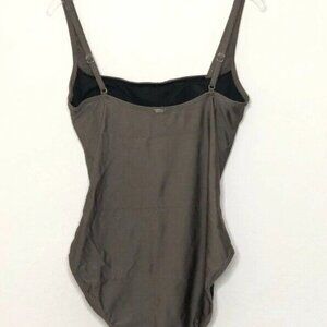 Calvin Klein Women's Ruched Panel One Piece Swimsuit Silver Brown Swimwear Sz 12