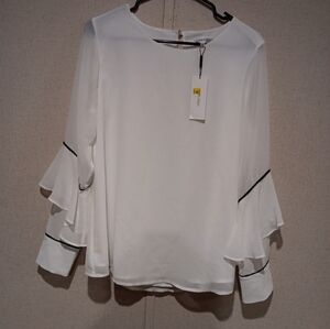 Calvin Klein Women's Ruffle Sleeve Blouse, White, Oversized Calvin Klein Pullove