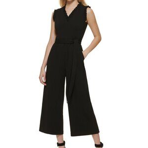 Calvin Klein Women's Ruffle-Trimmed Black Cocktail Jumpsuit Size 12