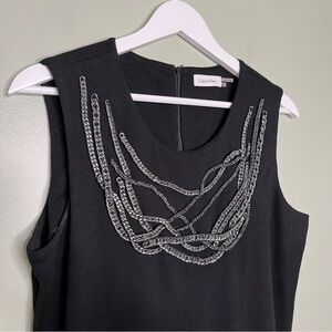 Calvin Klein women’s scoop neck sleeveless dress with chain detail in black. Size 12.