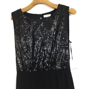 Calvin Klein Womens Sequin Sleeveless Round Neck Blouson Gown Dress Black 6 NWT