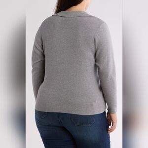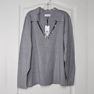 Calvin Klein Womens Sequin Trim V-Neck Sweater GRAY Cozy Knit