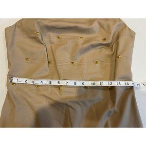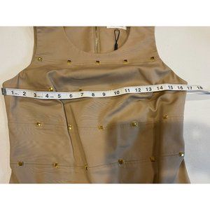 Calvin Klein Womens Sheath Dress Studded Detail Round Neck Back Zip Beige Size 6