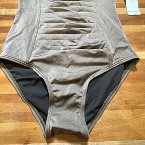 Calvin Klein Women's Shimmer Pleated One Piece Swimsuit - Bronze - Size 4