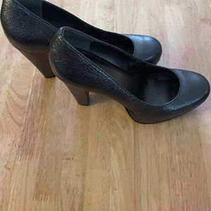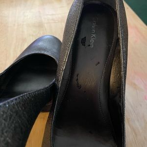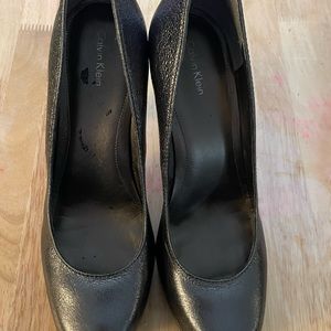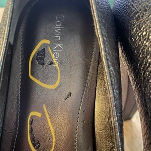 Calvin Klein Women’s Shiny Rounded Toes. Great condition shiny gray color . Size 9 . There is some wear and tear like in the last picture other than that great condition.