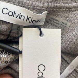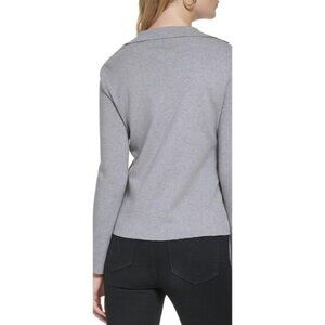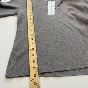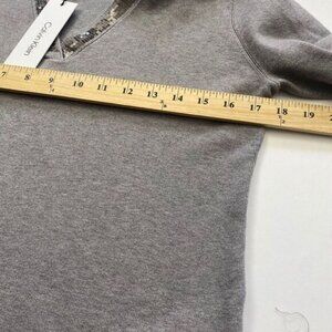 Calvin Klein Women's Top V-Neck Long Sleeve Sequin Collared Gray Size M Sweater New