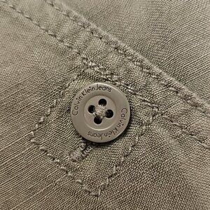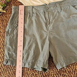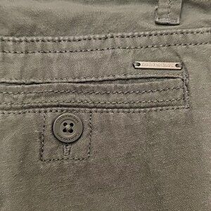 Calvin Klein Women's Shorts Size 4 Olive Green Linen Blend Pockets Outdoors Y2K