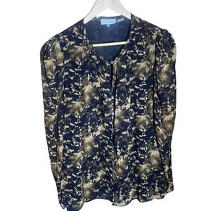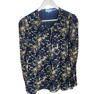 Calvin Klein Womens Shoulder V-Neck with Button Black/Multi business Career L