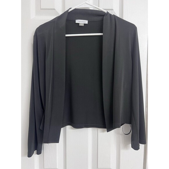 Calvin Klein Womens Shrug Sz L Black Stretch Bolero Cropped Cardigan 3/4 Sleeve