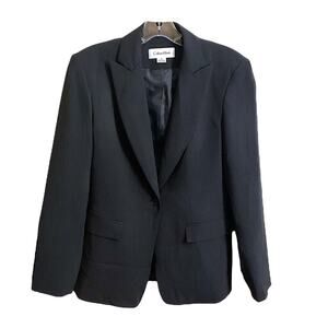 Calvin Klein Women's Size 4 Black One-Button Business Wool Jacket