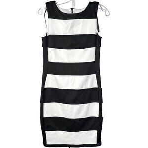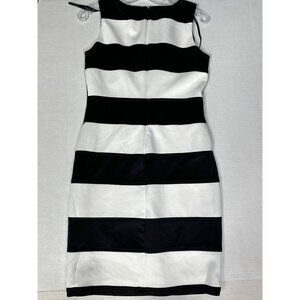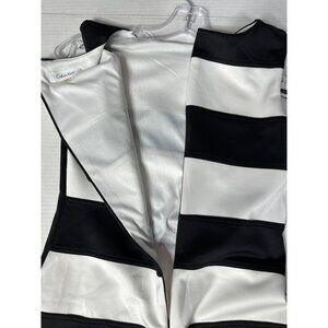 Calvin Klein Women’s Size 4 Sleeveless Striped Colorblock Sheath Dress Black Wht