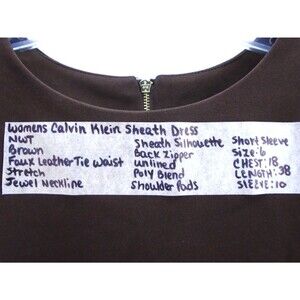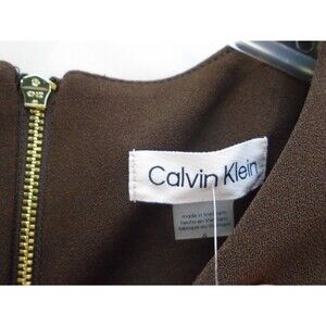 Calvin Klein Womens Size 6 Short Sleeve Brown Sheath Dress Faux Leather Belt