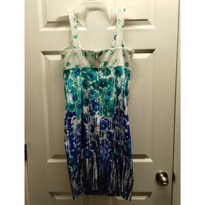Calvin Klein Women's Size 8 Blue & Green Abstract Floral Sleeveless Sheath Dress