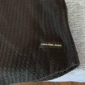 Calvin Klein Women’s Size Large Lightweight Hooded Waffle Knit Black Top