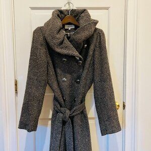 Calvin Klein Women’s Size M Wool Blend Coat Tie Belt Tweed Paris Vintage