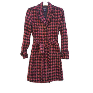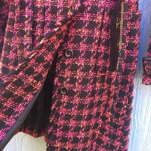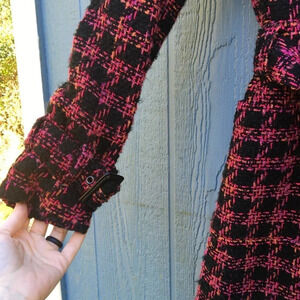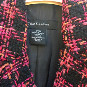 Calvin Klein Women's Size Small Pink Plaid Button Wool Blend Long Tweed Jacket