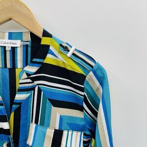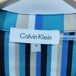 Calvin Klein Womens Size Small Striped Long Sleeve Button Down Blouse Blue 598