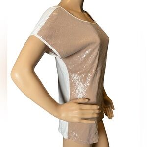 Calvin Klein Women's Size Small Tunic Beige Gold Sequin Cotton Blend Crew Neck