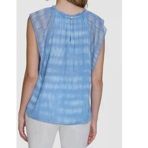 Calvin Klein Womens Size XL Blue Printed Ruffled Sleeve Top NEW