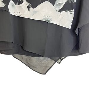 Calvin Klein Womens Sleeveless Blouse Medium Black White Floral Layered Hem Chiffon