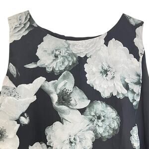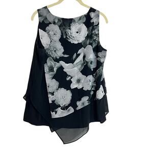 Calvin Klein Womens Sleeveless Blouse Medium Black White Floral Layered Chiffon