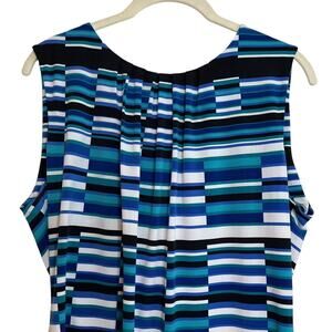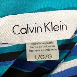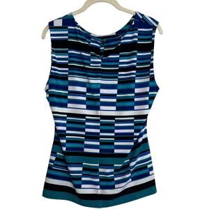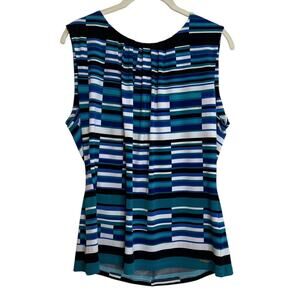 Calvin Klein Women's Sleeveless Knit Blouse Large Blue Color Block Pleated Bodice