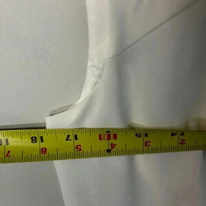 Step into elegance with this Calvin Klein sleeveless wool dress. Featuring a subtle small-hole design in crisp white, it’s the perfect blend of sophistication and style. Size M/L.