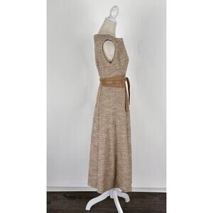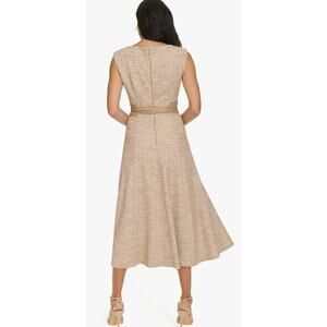 Calvin Klein Womens Sleeveless Tie Front Tweed Midi Dress Womens Size 4 Tan