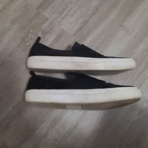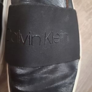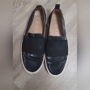 Calvin Klein Women's Slip On Loafer, Sz 7. Rebecca style. In used condition, can see some wear on soles. No holes or stains. Black exterior and white trim just needs to be shined up a but. Smoke free home.